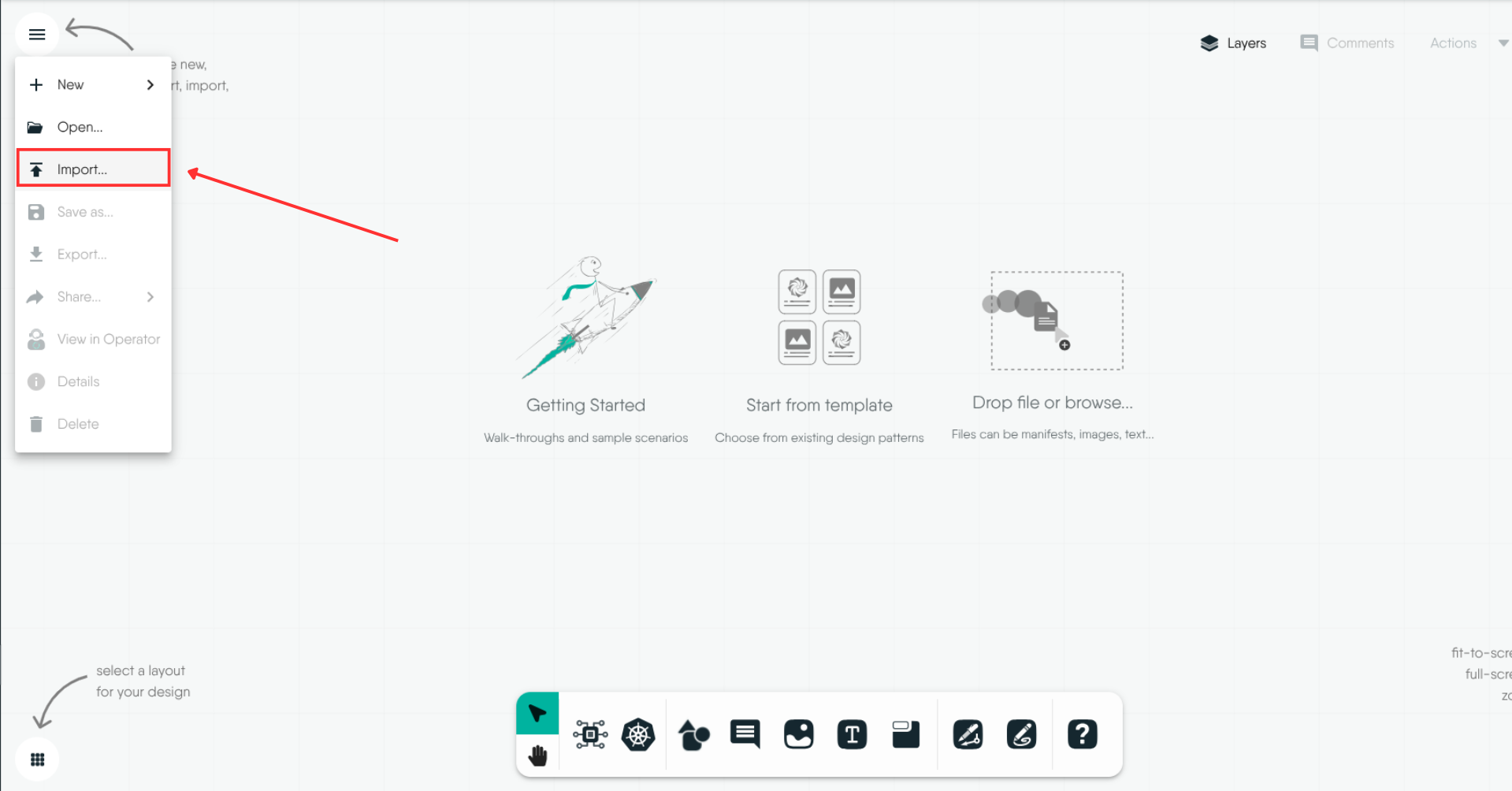 When working with Kanvas, you can effortlessly integrate various design files to start building and managing your cloud-native applications. Whether you’re working with Helm charts, Docker Compose files, or Kubernetes manifests, Kanvas provides a unified interface to import these files and visualize your infrastructure setup. This versatility allows you to streamline the design process, ensure consistency, and tailor your cloud-native environments to meet specific needs.